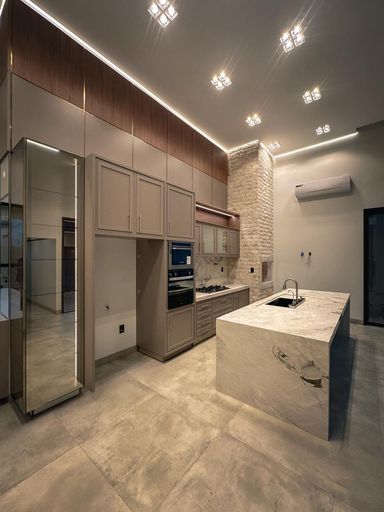 Cozinha equipada com: micro-ondas, forno, cooktop e lava-louças