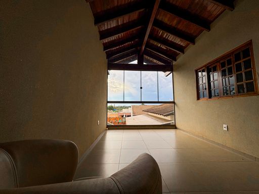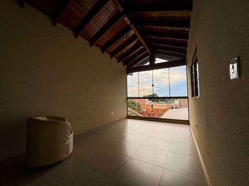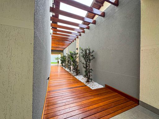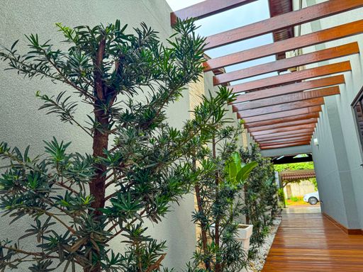 Varanda com madeiramento aparente